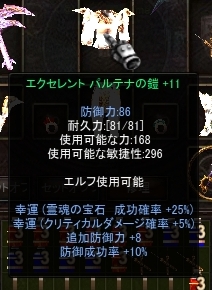 しかし、念願のパル回避装備を、それも+11ALLというのは嬉しい。